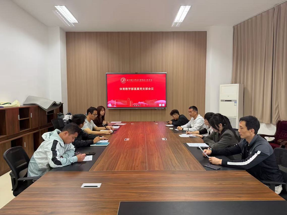 10月30日,体育教学部直属党支部召开深入学习贯彻党的二十届四中全会精神专题学习会。会议由直属党支部书记严军锋主持,体育教学部全体党员教师参加。