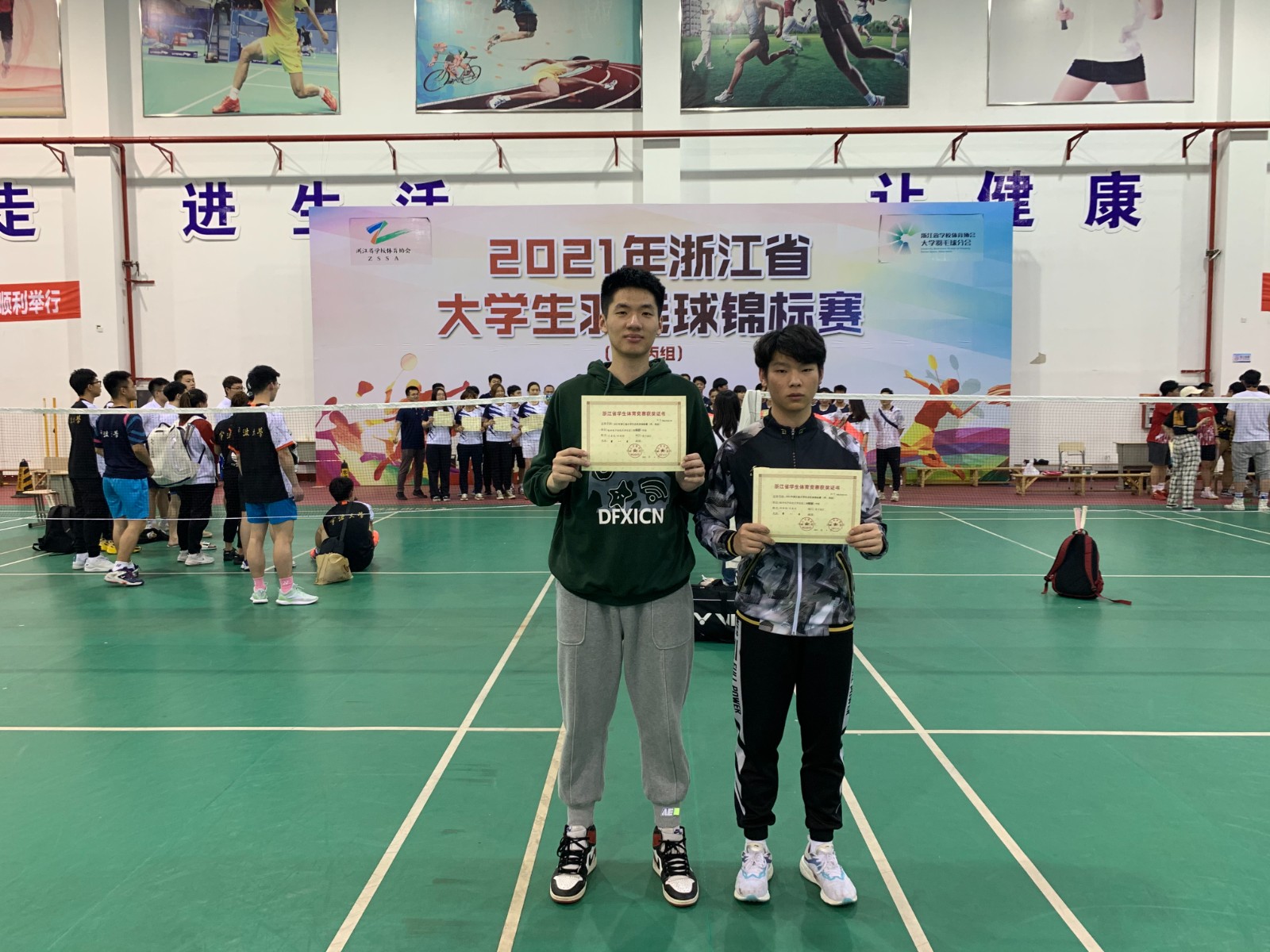 此次比赛中,我院羽毛球队员团结一致,奋力拼搏,林海翔和肖康亮在男子双打比赛中获得第八名的好成绩,实现了学院羽毛球队在省级赛事零的突破。林海翔和王天泽获得了“优秀运动员”称号。孟子仪老师也获得了“优秀教练员”称号。