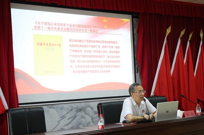 开班后,陈松作了题为“弘扬遵义会议精神,坚持马克思主义中国化”的专题报告。他简要回顾了中国共产党发展的历史,讲述了遵义会议召开的历史背景,强调了遵义会议的历史意义。正是由于遵义会议这一转变,我们党才能够胜利地结束长征,在长征的极端艰险的条件下保存并锻炼了党和红军的基干。同时他也讲到要学习伟大的长征精神,把全国人民和中华民族的根本利益看得高于一切,坚定革命的理想和信念,坚信正义事业必然胜利的精神。