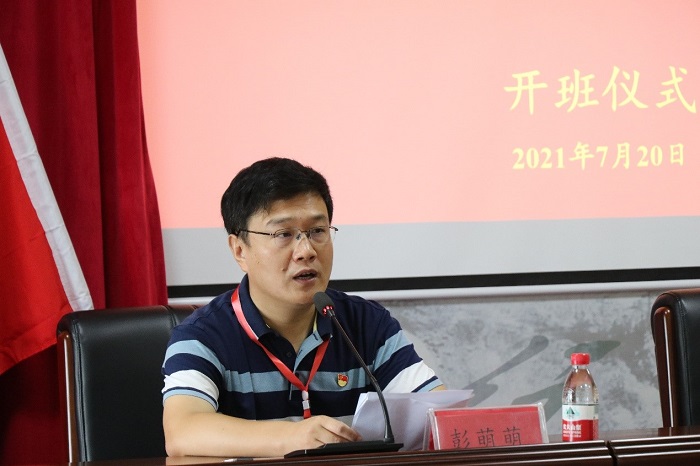 培训班学员教师代表马紫玉带领全体学员进行入学宣誓后,彭萌萌接过陈松递来的班旗,本次培训班正式开班。