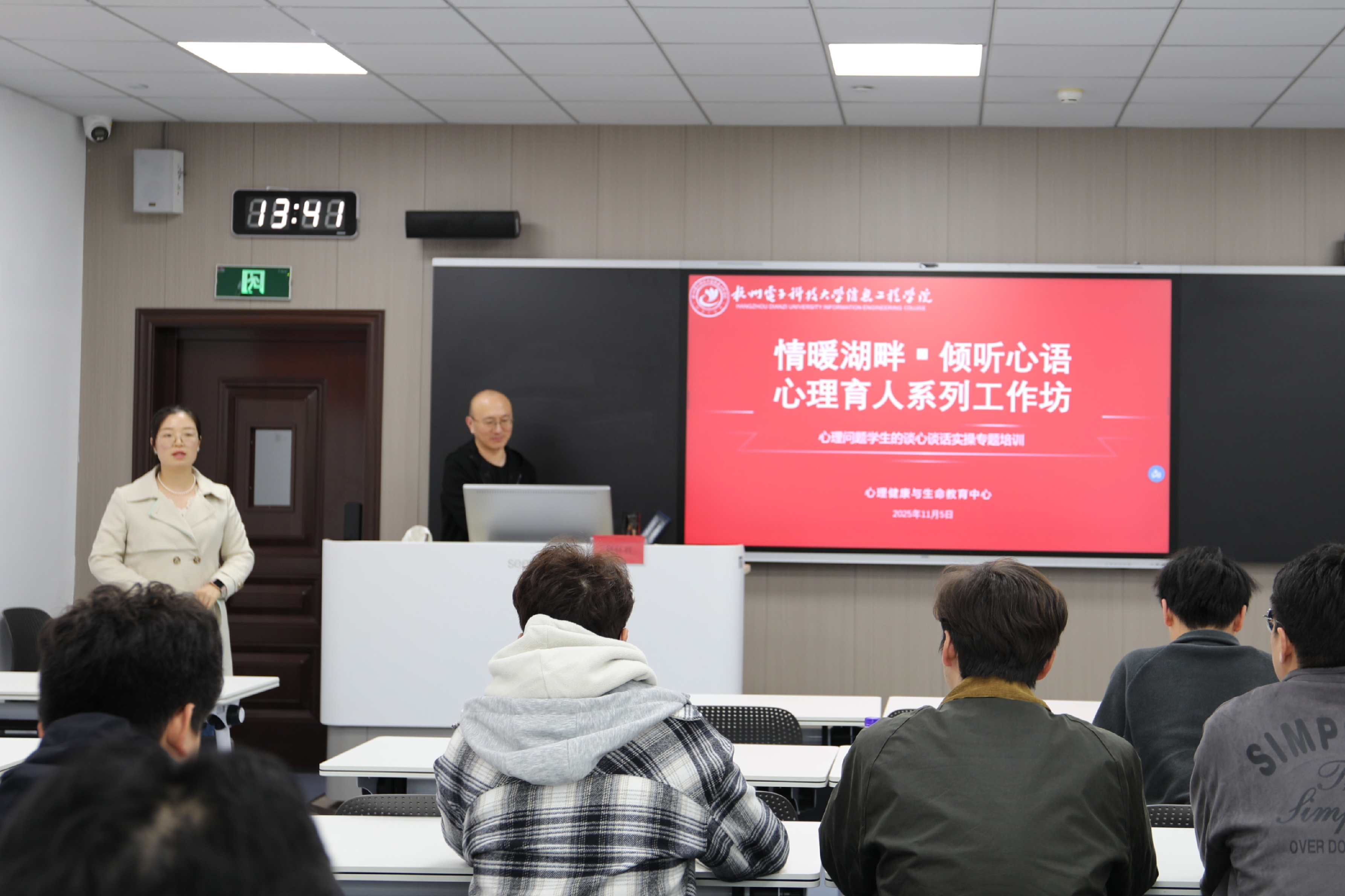 2025年11月6日,我院心理健康与生命教育中心特邀校本部专职心理老师杨怀胜开展了以“辅导员谈心谈话实操”为主题的专题培训,来自各分院的副书记和辅导员共20余人参加了此次培训。