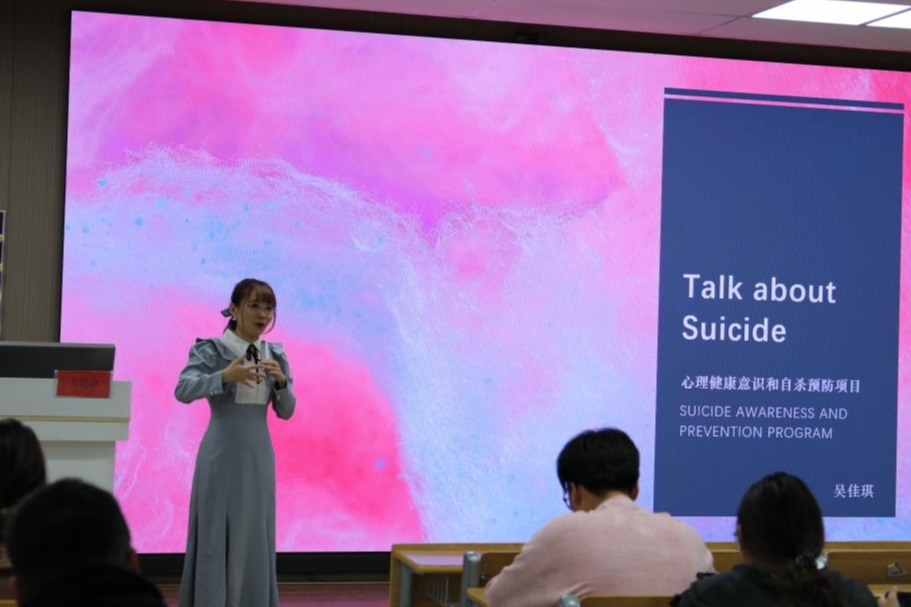 为进一步加强校园心理健康教育工作,提升朋辈心理育人队伍建设质量,强化班级心理委员做为“生命守护者”的意识,2025年11月12日下午,心理健康与生命教育中心特邀马克思主义学院吴佳琪老师面向2025级心理委员开展了以“预防自杀”为主题的讲座。
