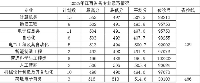 2025年江西省各专业录取分数线