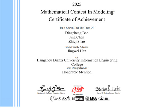 在2025年1月24日6:00至1月28日9:00举行的美国大学生数学建模大赛(MCM/ICM)中,我院数学建模协会团队凭借扎实的数学功底、创新的建模思维和默契的团队协作,从全球顶尖高校队伍中脱颖而出,斩获佳绩!本次我院共派出4支参赛队伍,其中3支队伍荣获奖项!