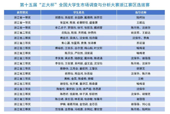 4月27日,由中国商业统计学会主办,浙江工商大学承办的“正大杯”第十五届全国市场调查与分析大赛浙江赛区选拔赛圆满结束。经过激烈角逐,我院学子荣获一等奖3项,二等奖4项和三等奖12项的好成绩!同时,在第十五届全国大学生市场调查与分析大赛本科组总决赛中,我院学子荣获全国二等奖1项,全国三等奖1项的好成绩!
