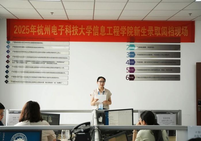 7月21日,杭州电子科技大学信息工程学院浙江省普通类招生开展集中阅档工作。根据相关办法,通过审阅电子档案,对考生的基本情况和体检信息进行审查。
