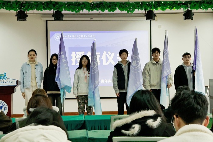大会尾声,招生联合会执行会长带领全体师生进行庄严宣誓,铮铮誓言既是对自我实践的郑重承诺,也是对母校培育的深切感恩。宣誓结束后,郑钰老师为实践团队代表授旗,助力寒假社会实践顺利出征。