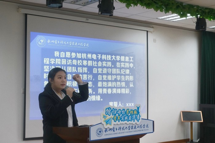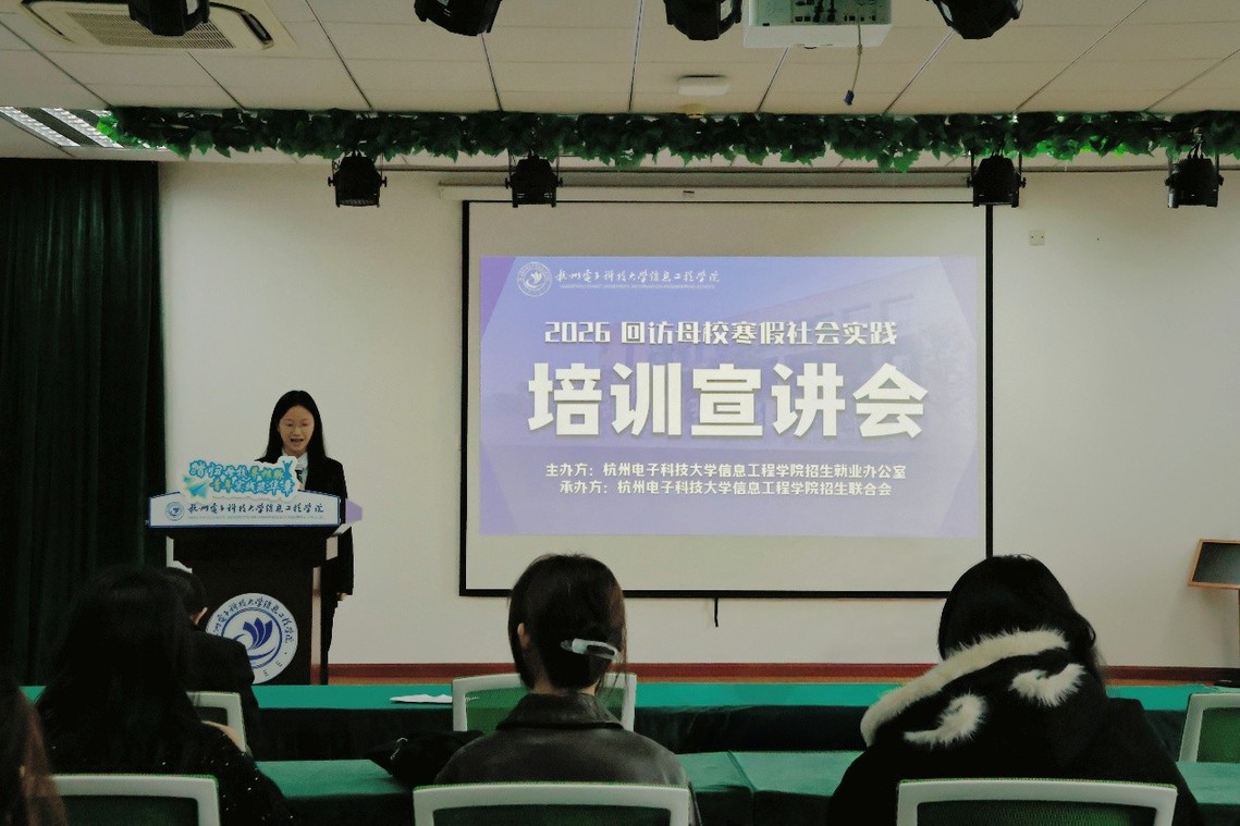 12月10日下午,杭州电子科技大学信息工程学院2026年“踏归母校寻根脉・青年实践筑华章”寒假社会实践宣讲培训会在教工之家顺利开展。