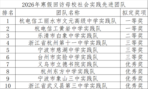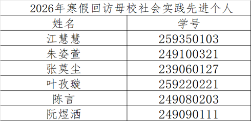 现将本次寒假社会实践先进团队和先进个人拟评选结果予以公示,名单如下: